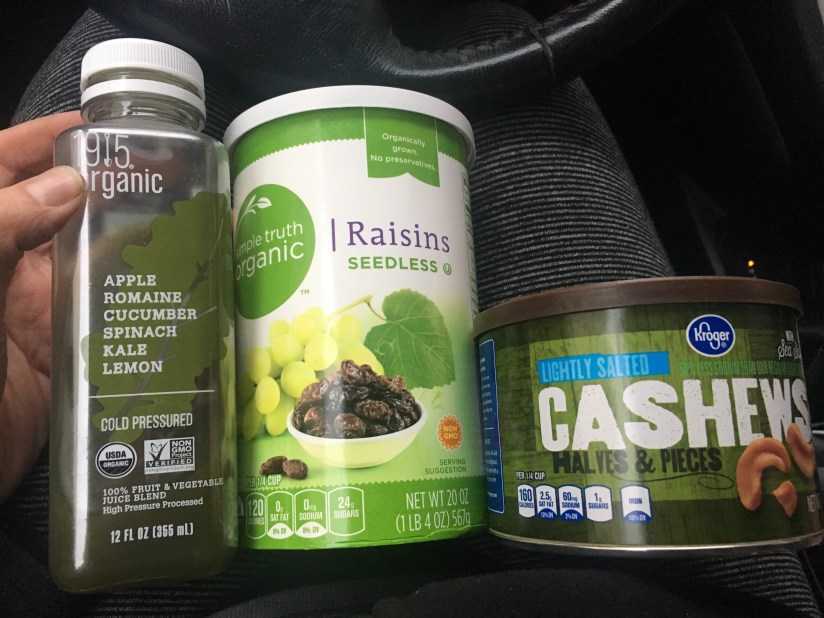 And I don’t have to feel bad about eating these comfort foods. The juice I drank is chock full of micronutrients and vitamins. Raisins have magnesium, B-6, and iron. And cashews are also full of magnesium and niacin.