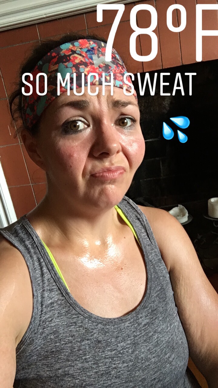 Sunday: 3 mi EZ. We ran 3.06 in 34m, 33s with an average pace of 11:18. It was hot. And so humid. I’m finding it’s so humid that my body doesn’t really start sweating until we are back in the house and out of the humidity. I mean, like literal puddles of sweat on the floor after we stretch. I’m thankful for hard wood floors that I can spot mop!