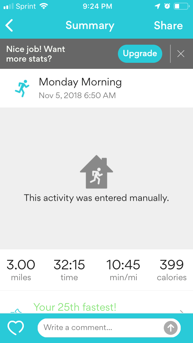 I’m finally back to running 3 miles with a 10:45 average, but it’s been slow going.