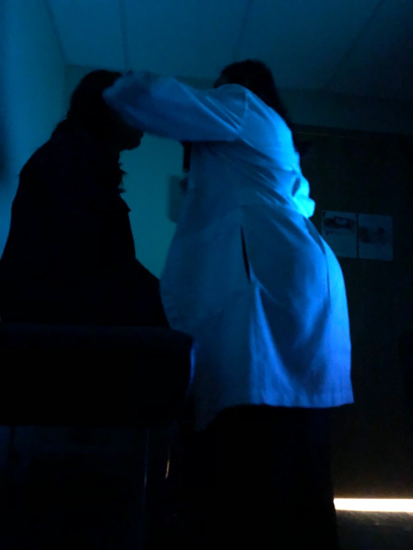 Then, she shuts off the lights and looks deep into my eyes :). I believe she’s looking for inflammation here.