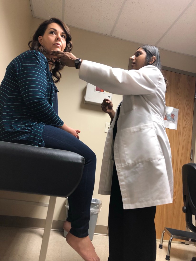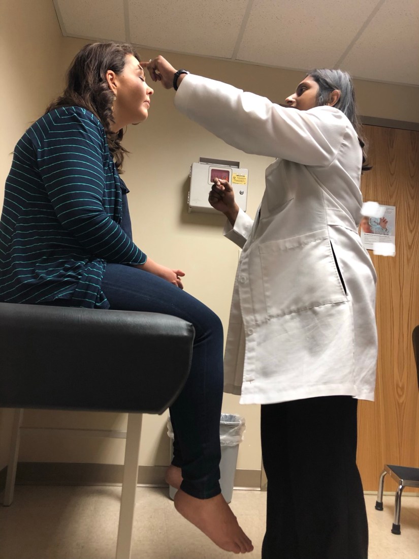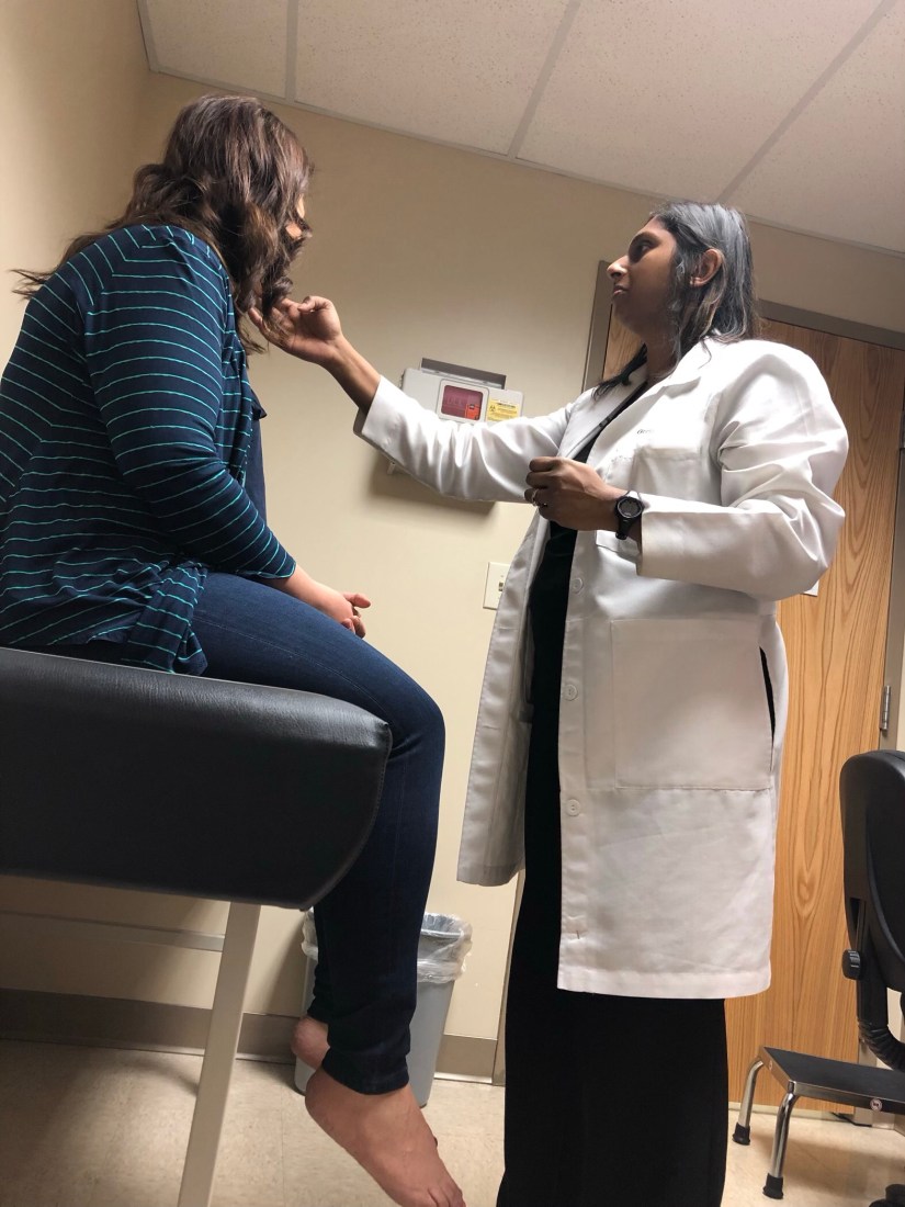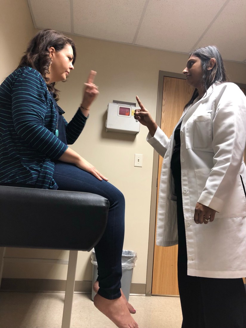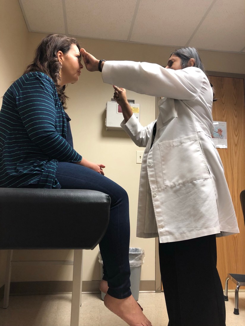 Then, she has me close my eyes as she touches both sides of my face, hands, and feet to see if I feel a difference on either side.