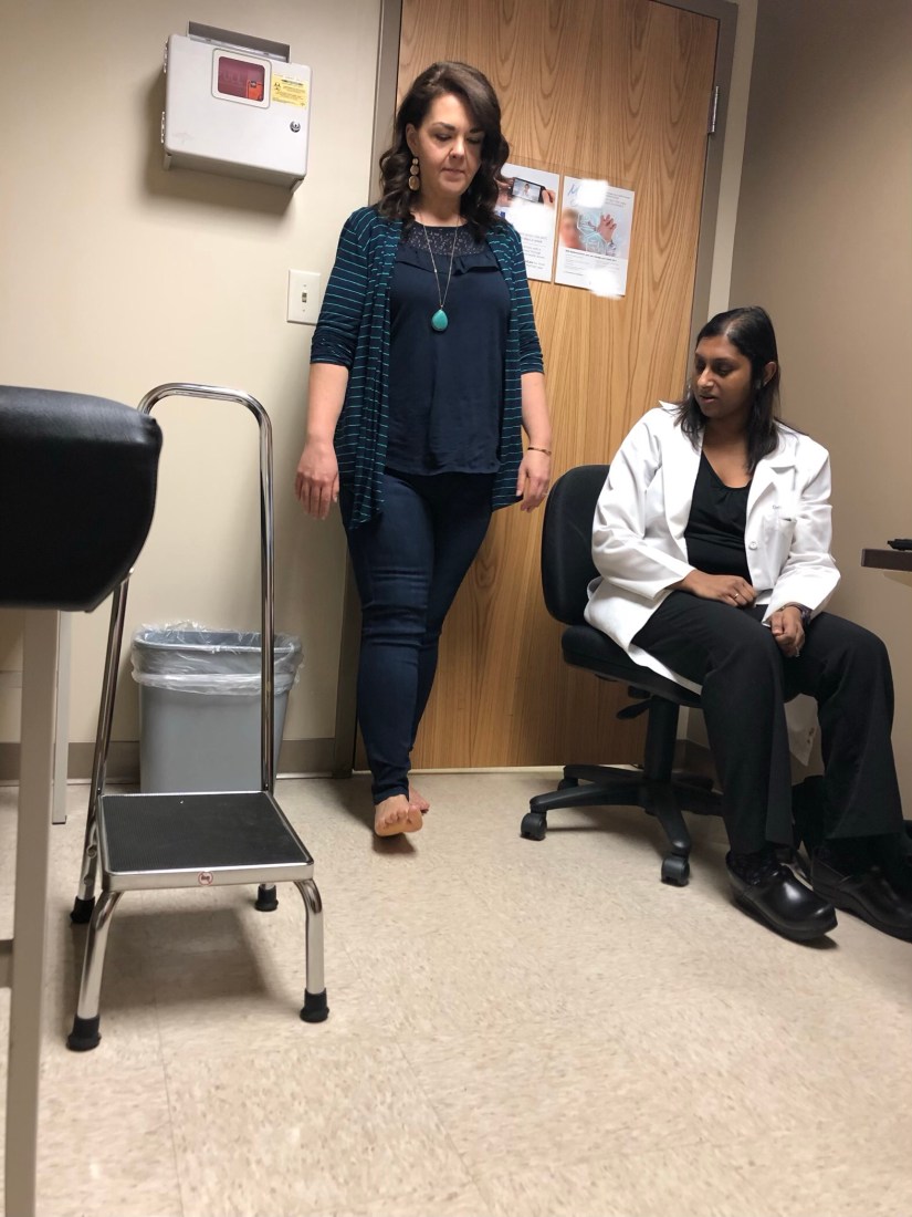 Then it’s time for my runway walk π. We are checking my gate. Again, I remember a time when walking a straight line was next to impossible. As weird as it feels to do this at a doctors office, I’m so thankful for how far I’ve come.