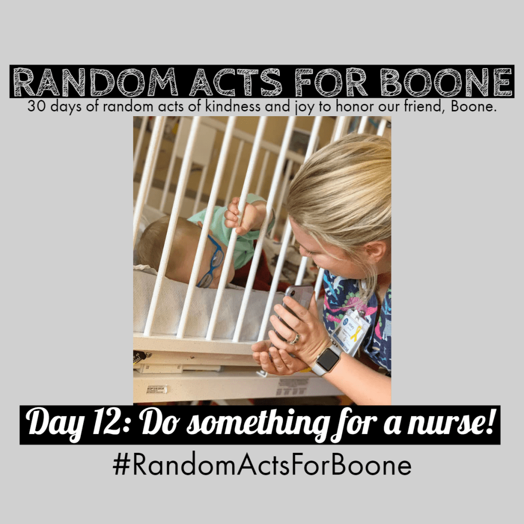 Be sure to share the story of what you did (or photos or videos) on social media with the hashtag #RandomActsforBoone!