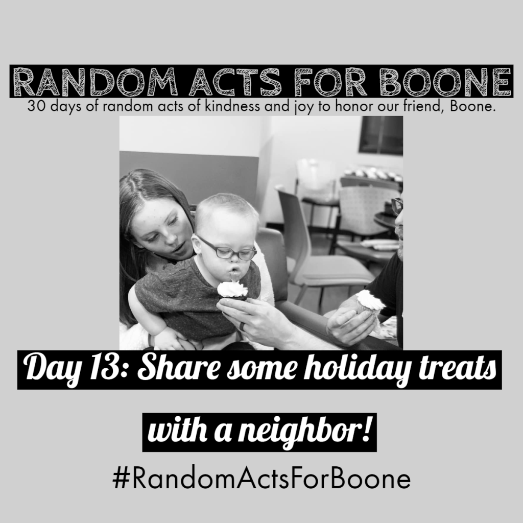 Be sure to share the story of what you did (or photos or videos) on social media with the hashtag #RandomActsforBoone!