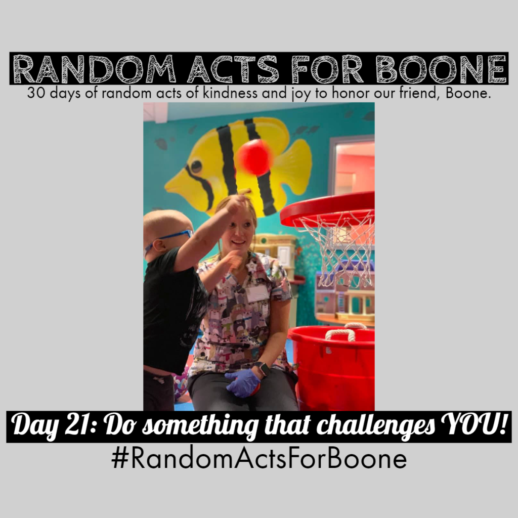 Be sure to share the story of what you did (or photos or videos) on social media with the hashtag #RandomActsforBoone!