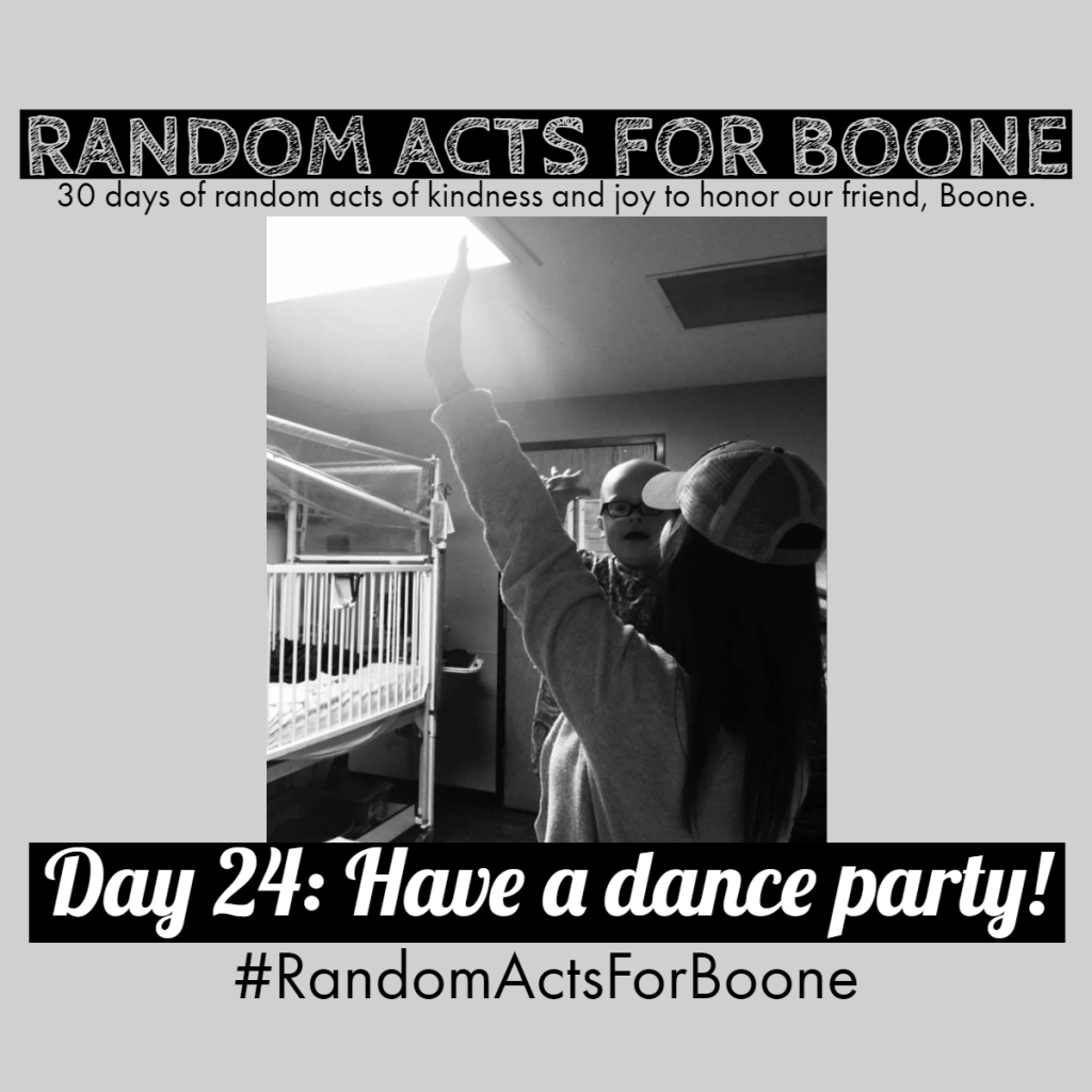 Be sure to share the story of what you did (or photos or videos) on social media with the hashtag #RandomActsforBoone!