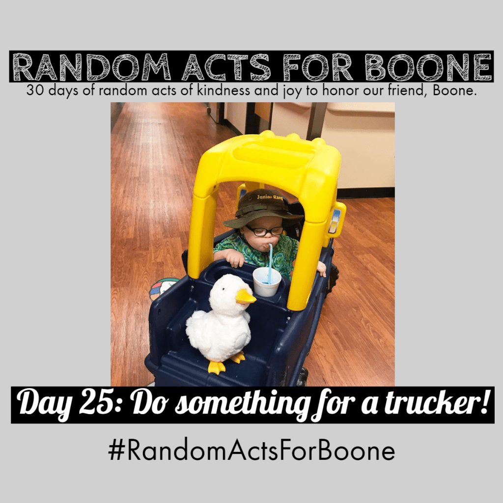 Be sure to share the story of what you did (or photos or videos) on social media with the hashtag #RandomActsforBoone!