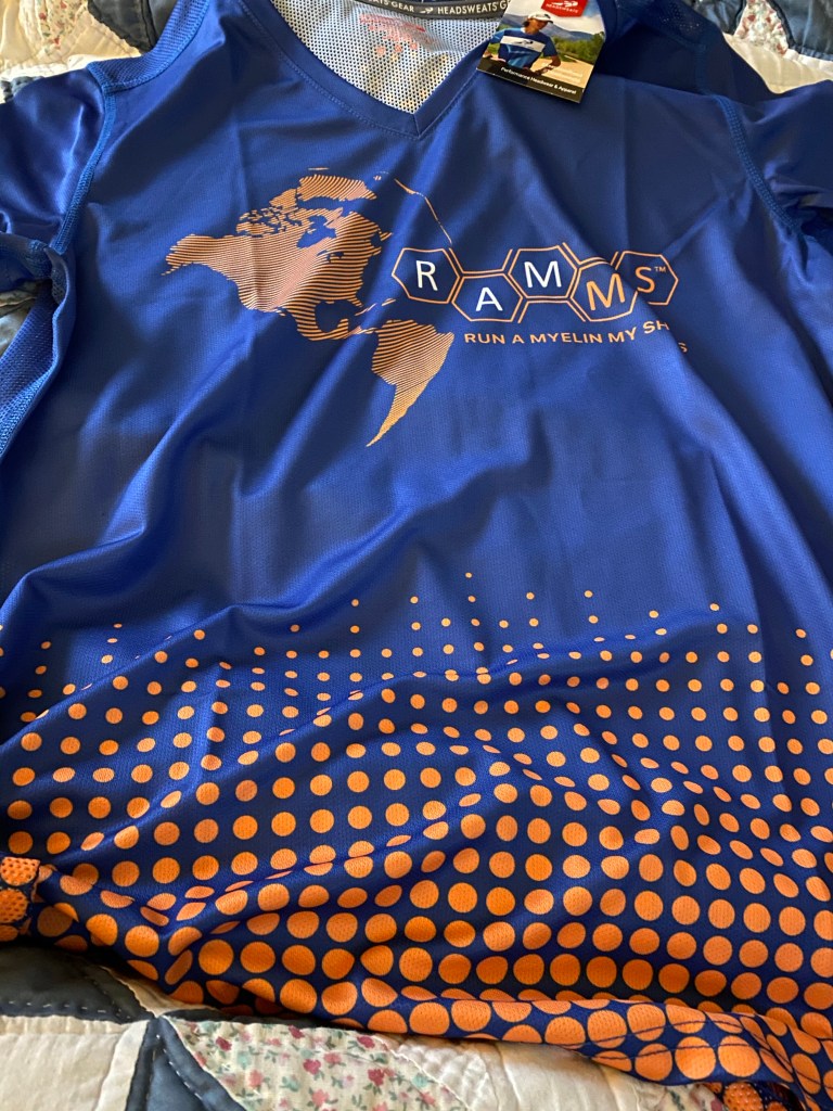 Instead, I’m staring at my 2020 Run a Myelin My Shoes team shirt and praying I will feel able to run or walk the 10K I had planned to run virtually tomorrow.