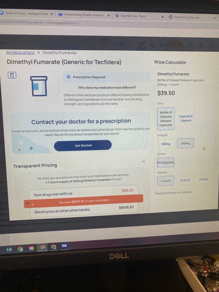 As soon as Brian got back to his office, he went to the website and put in Dimethyl Fumarate (Generic for Tecfidera). These words popped up on the screen: