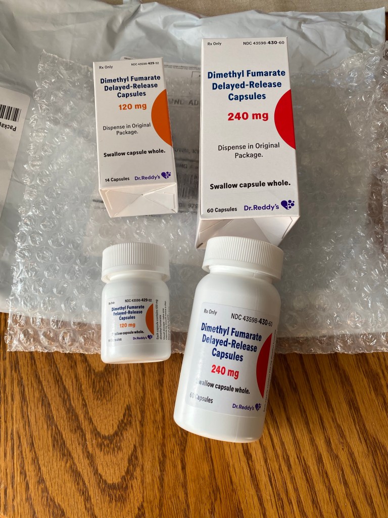 In early 2021, I received a notice that my insurance would no longer cover Tecfidera. A competing manufacturer had come out with a generic version and Biogen (the manufacturer of Tecfidera) had lost their patent, so they came out with a new variation called Vumerity. My insurance did not cover the generic at the same co-pay rate as the name-brand. I believe my copay for the name brand was a flat $350, but the copay for the generic was 20% of the cost of the generic which was $1200 per month. Needless-to-say, I could not afford that. And the manufacturer for the generic did not have any copay assistance at the time. All that left me with one viable option – switch to Vumerity. Biogen marketed it as a better formulated form of Tecfidera, easier on the stomach and causing less side-effects. My doctor had many patients in the same situation with me, and all of them had tolerated the transition well so she recommended that to me as a good option.