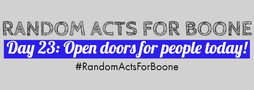 Here's an easy one :), open doors for people today! Be sure to share the story of what you did (or photos or videos) on social media with the hashtag #RandomActsforBoone!
