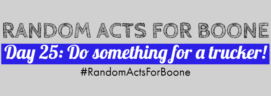 Like many boys, Boone loves trucks. Truckers sometimes get a bad rep, but they are hard-working people! One of our friends at church drives a truck all week and then shows up at 7:00 am on Sundays to play drums! We enjoy so many conveniences because of the hard work of truckers. Did you order… Continue reading #RandomActsForBoone Day 25!
