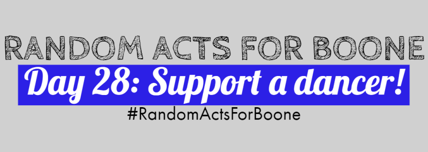 Boone's big sisters have both been dancers in the past, and currently his sister, Viv, is an active dancer while sister Stella has taken to swimming. Dancing is such a good outlet for many. Today, find a way to support the art of dance in your community either by supporting a local dance company, sharing… Continue reading #RandomActsForBoone Day 28!