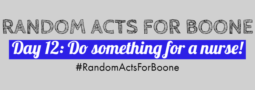 We all have a favorite nurse in our lives! Show them some love today! Or drop some goodies off to nurses at your local hospital Be sure to share the story of what you did (or photos or videos) on social media with the hashtag #RandomActsforBoone!