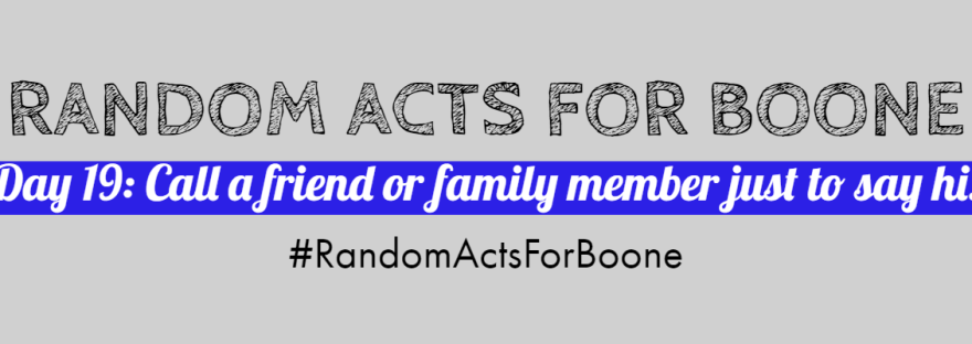 Think of someone you haven't spoken to in a while. Or maybe you saw someone at Christmas and they have been on your heart ever since. Just pick up the phone and call someone just to say hi and see how they are. We are so quick to text these days and only contact people… Continue reading #RandomActsForBoone Day 19!