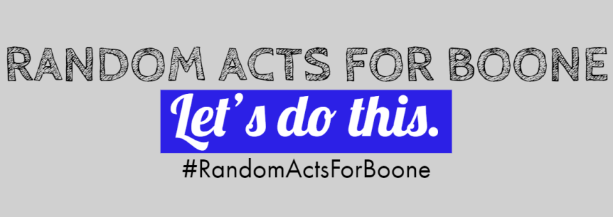 Let's kick this thing off with a bang! Challenge is on... make someone laugh today. Bonus points if they have tears or pee their pants. Be sure to share on social media with the hashtag #RandomActsforBoone!